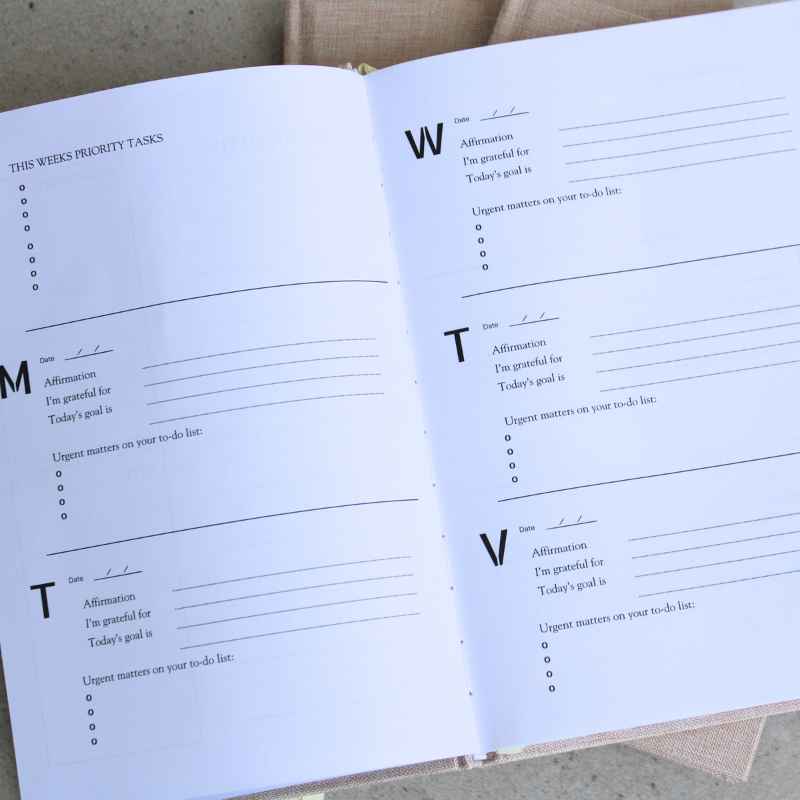 Incorporating daily gratitude and affirmations into your routine helps cultivate a positive mindset, boosting your confidence and appreciation for life’s simple joys. With detailed goal-setting pages, you gain clarity and direction, breaking down your dreams into actionable steps. Prioritization tools keep your mind uncluttered and focused, empowering you to align with your true self and embrace a more joyful, purpose-driven life.